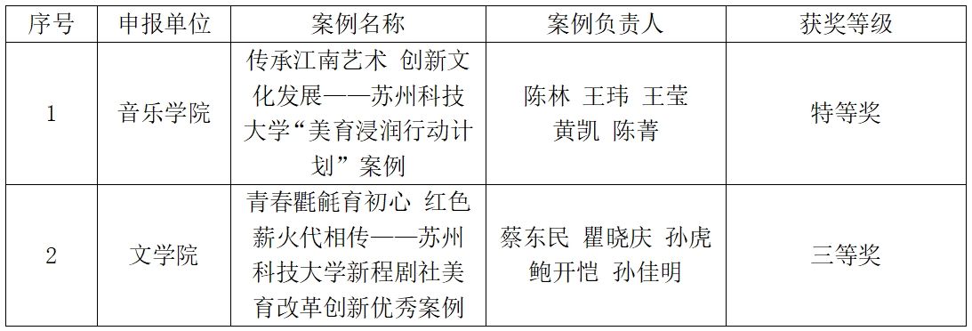 江苏省高校美育改革创新优秀案例我校获奖名单