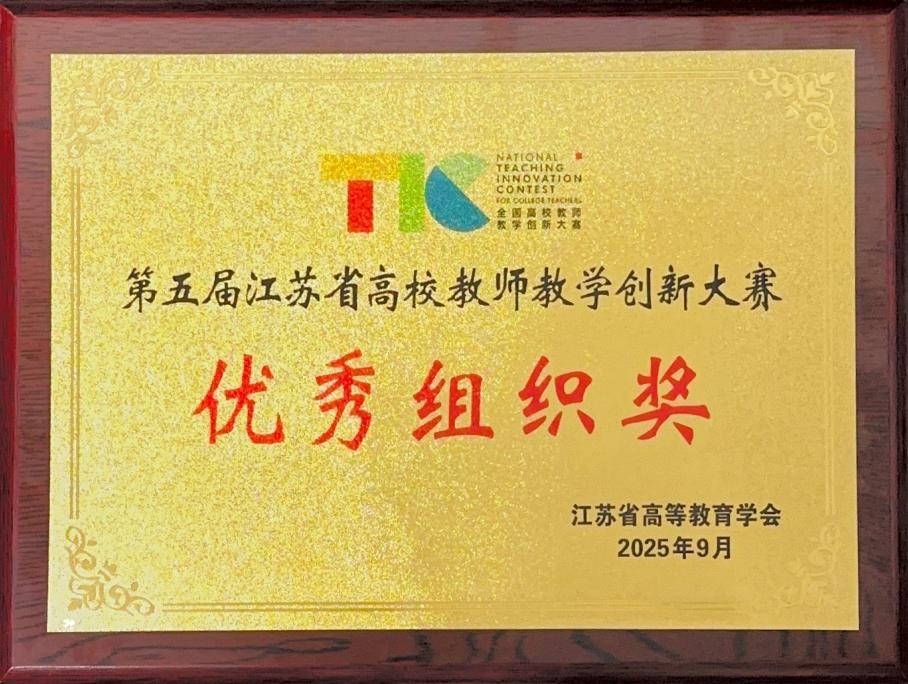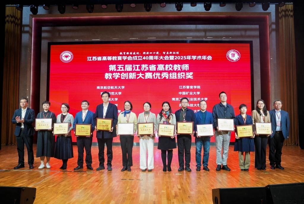 10月25日,江苏省高等教育学会成立40周年大会暨2025年学术年会在南京举行。会议颁布江苏省高等教育学会突出贡献奖、江苏省高等教育学会高等教育研究卓越成就奖、第五届江苏省本科高校教师教学创新大赛优秀组织奖以及2024年度高等教育科学研究优秀成果特等奖。我校荣获“第五届江苏省高校教师教学创新大赛优秀组织奖”。
